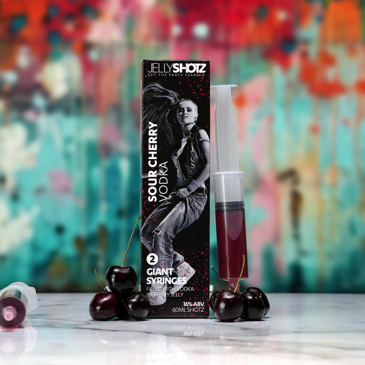 Contains: Vodka, H2O, Cherry Jelly, Sour Cherry Syrup, Artificial Colouring